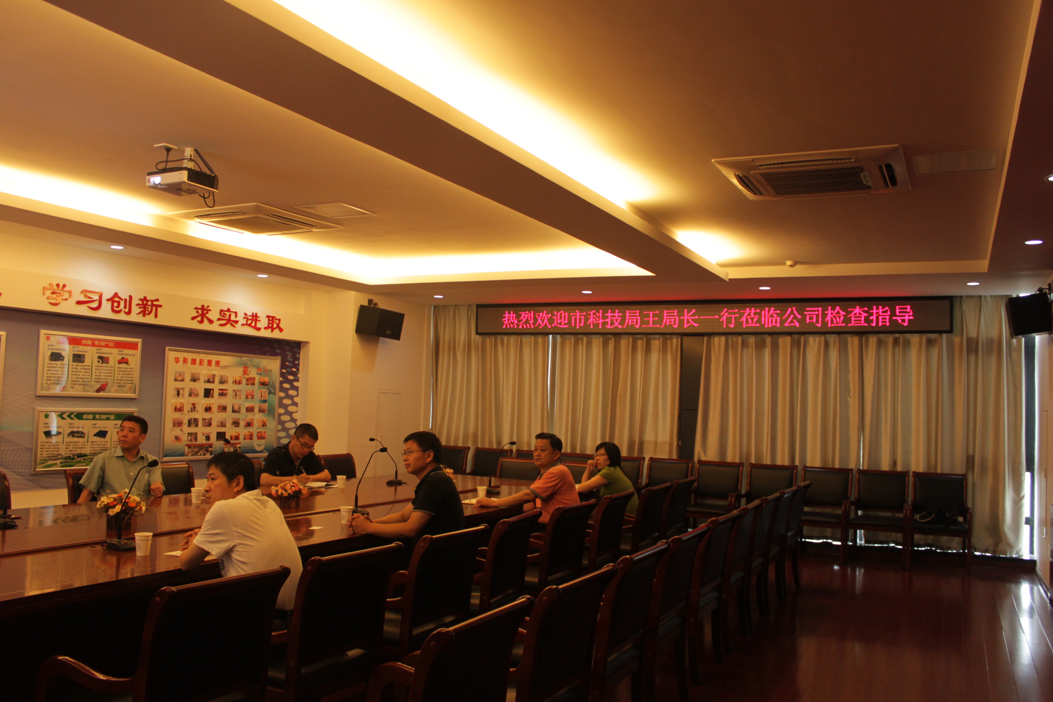 2013年6月24日下午,无锡市科技局王浩副局长、市企业科技创新服务中心肖栋主任、李雷副主任一行莅临无锡华御公司检查指导。华御总经理耿振民先生,副总经理付太礼先生、副总经理马锡红先生与各位领导进行了亲切交流。